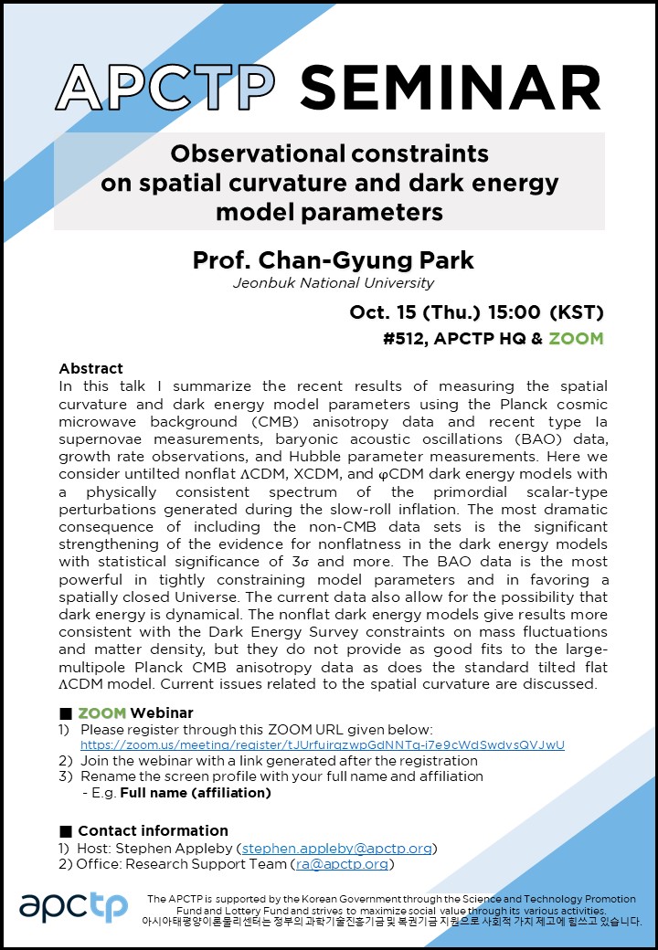 | Place | #512, APCTP HQ & Online via ZOOM | ||||||