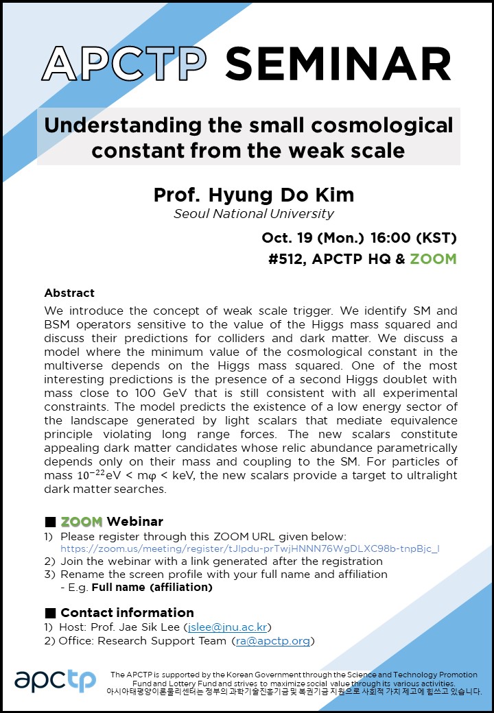 | Place | #512, APCTP HQ & Online via ZOOM | ||||||