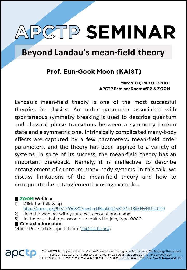 | Place | APCTP Seminar Room $512 & ZOOM Webinar | ||||||