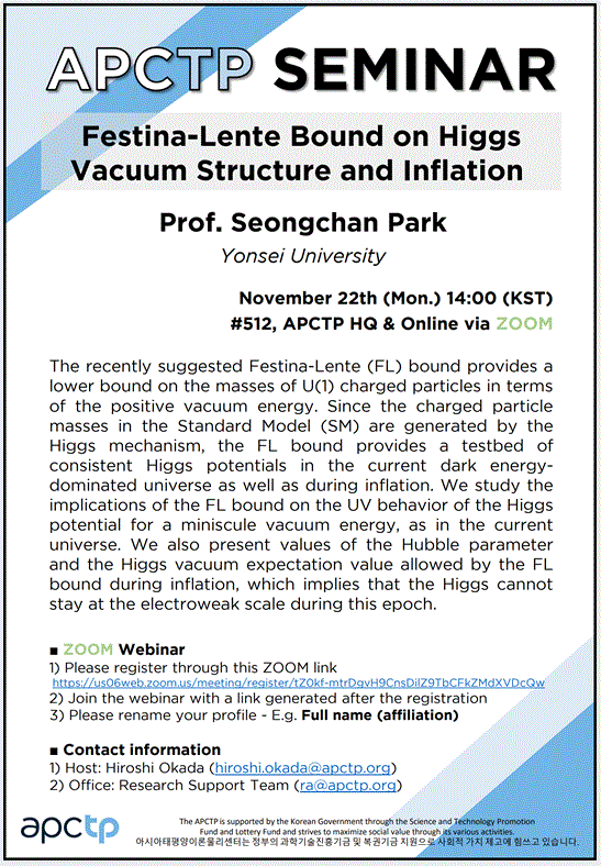 | Place | #512, APCTP HQ & Online via ZOOM | ||||||