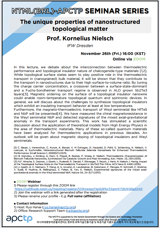 | Title | The unique properties of nanostructured topological matter | ||||||